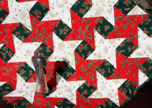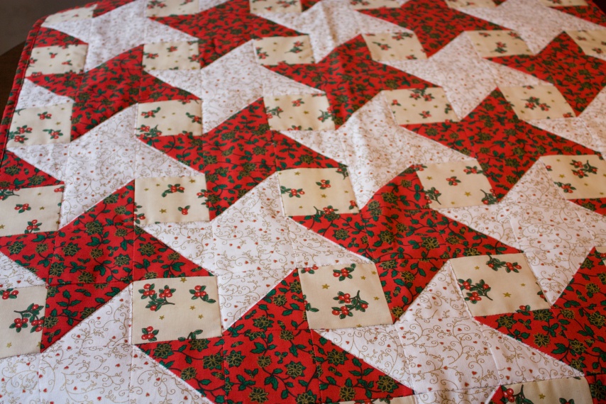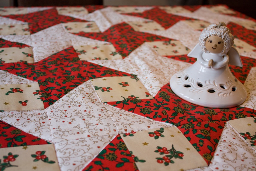 Vánoční ubrus v tradičních barvách vánoc s jednoduchým vzorem.